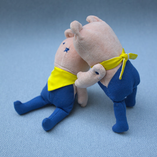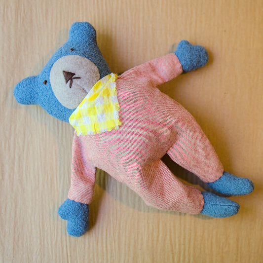 Our toys are made in small batches released throughout the year. We work with limited quantities of all natural materials. These are often deadstock or hand dyed fabrics and as a result our toys are not over produced. This style of slow heirloom production allows us to create unique collectable objects. Our shelves here are constantly changing.