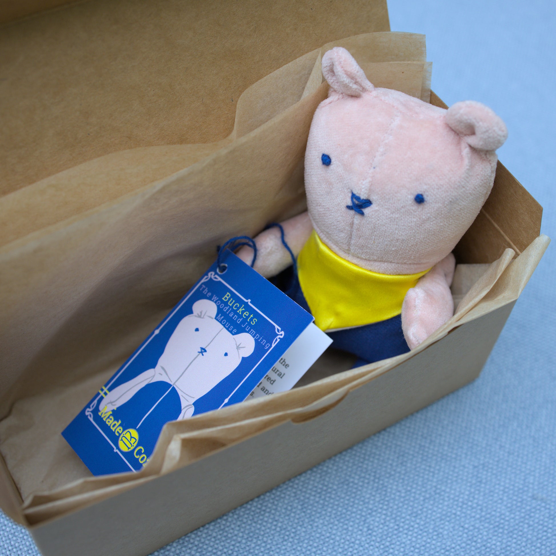 Each mouse comes in a gift box made from recycled materials with a small booklet that includes care instructions and is tied up with string.