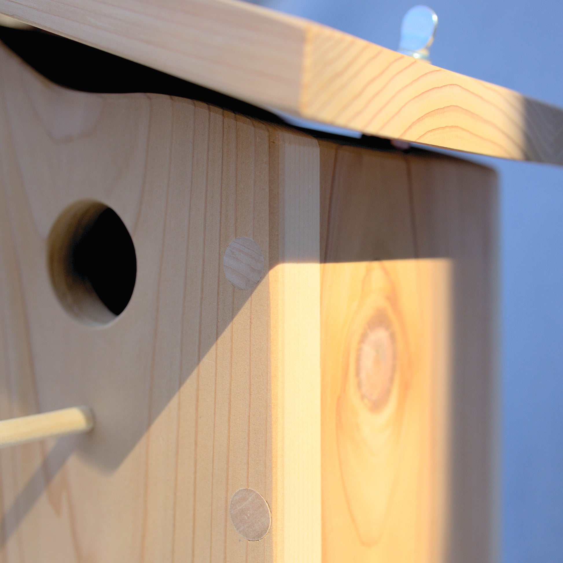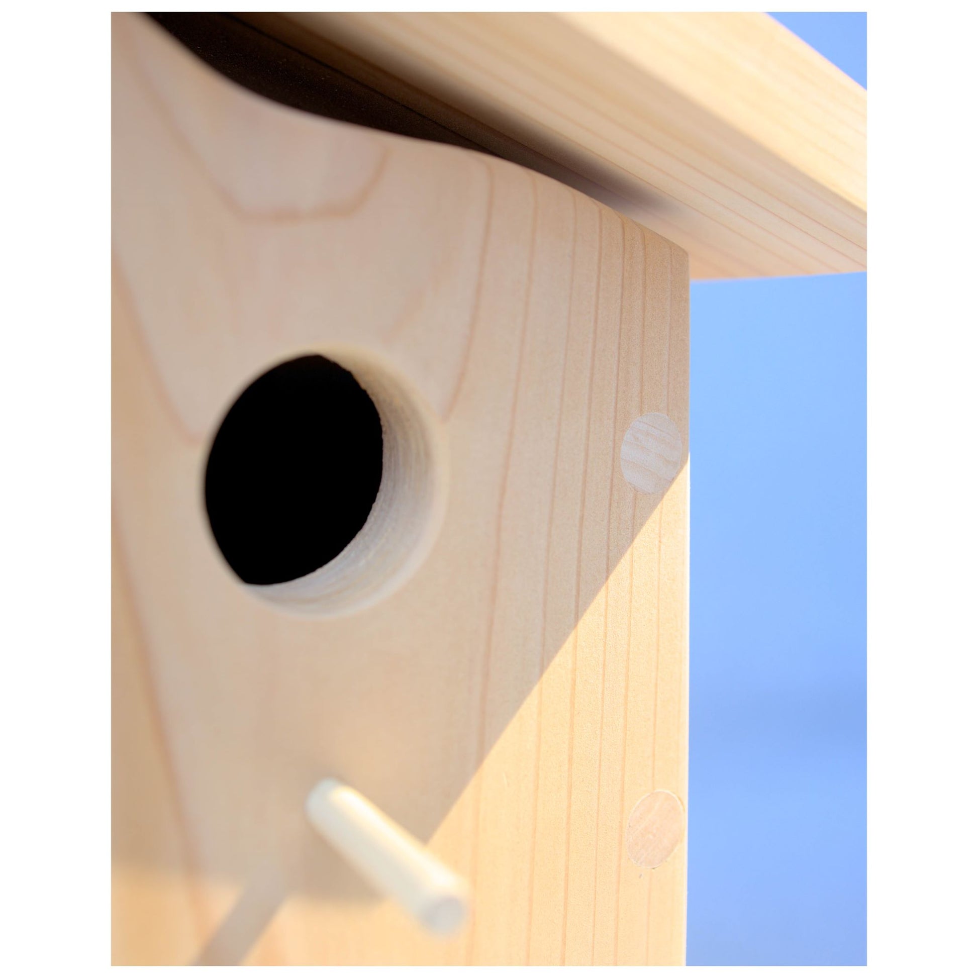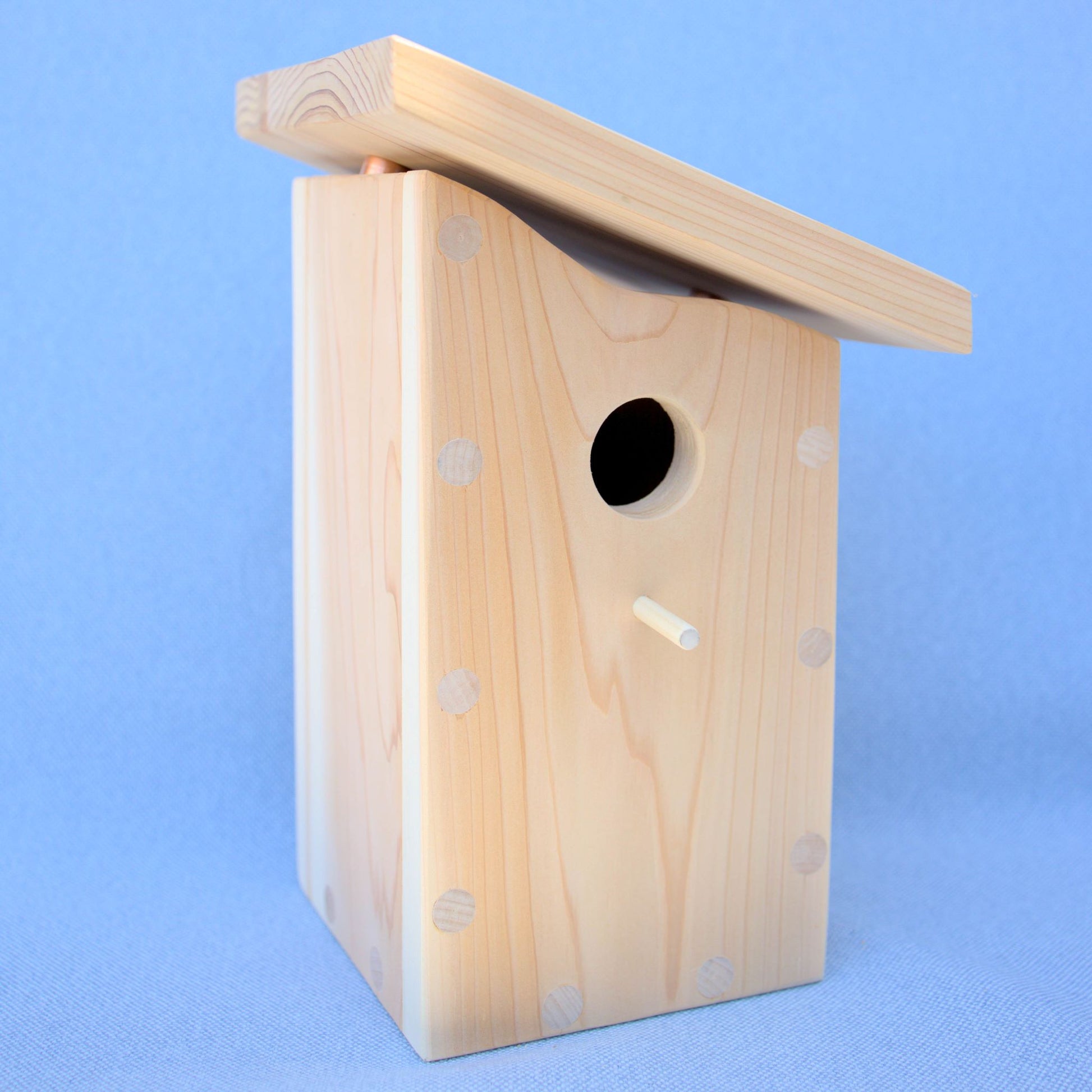 The Cedrus House is a delightfully simple and modern birdhouse design. The quality speaks for itself with clean slants, gentle curves and no exposed screw holes. It's made of unfinished cedar which is naturally rot and insect resistant. The roof is slightly elevated above the frame to allow for airflow. The overhang and slant help protect the birds against rain and wind.