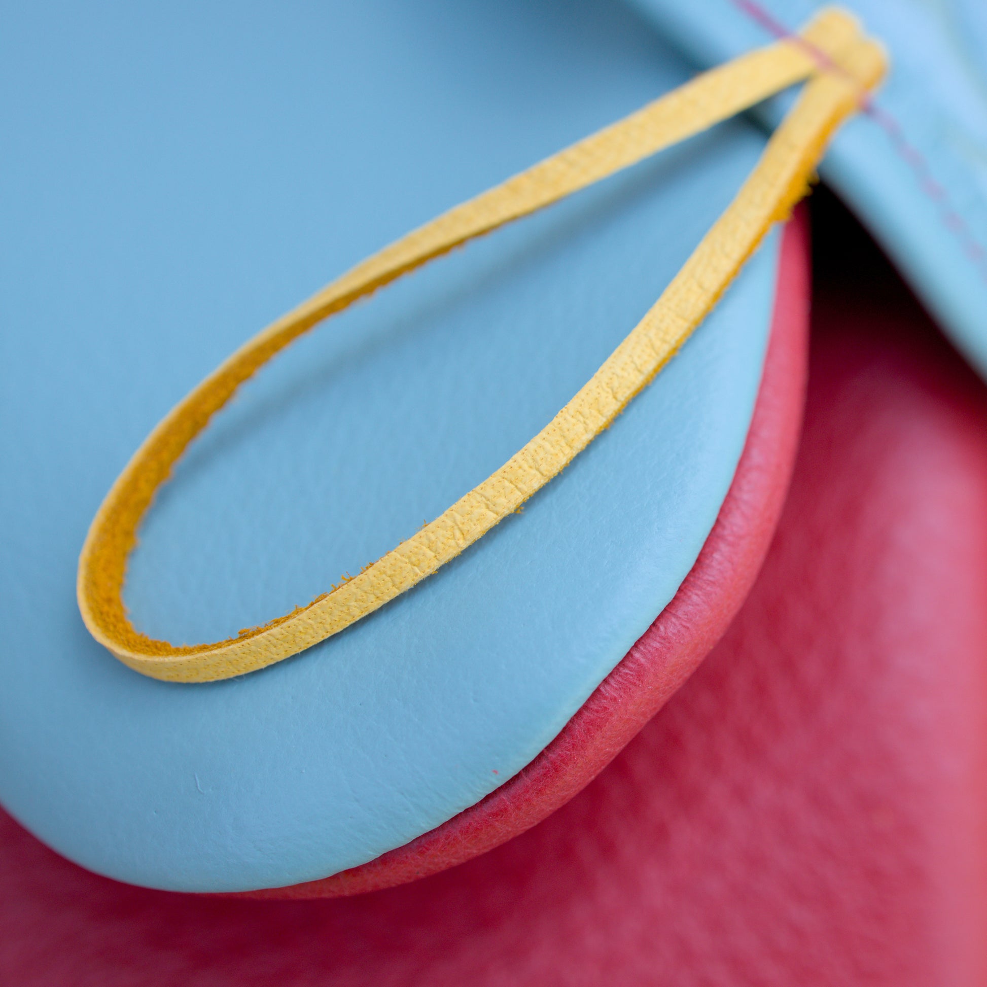 - Seafoam Blue-green & Poppy Red with a yellow loop