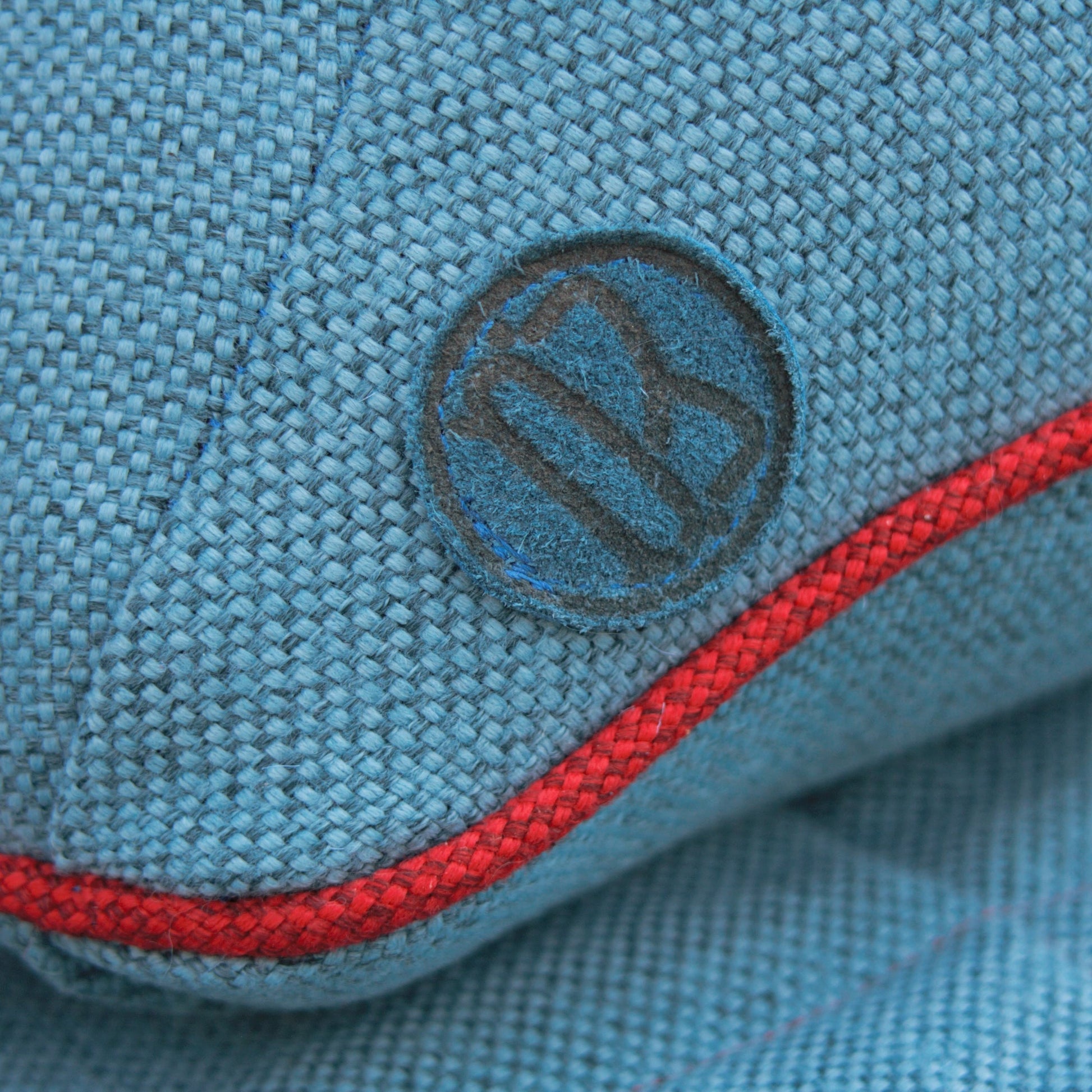 They are made with a luxurious woven wool that has a slight stretch and is stuffed to the brim so it is both firm and bouncy. Face is hand embroidered. Piping is out of yellow wool.