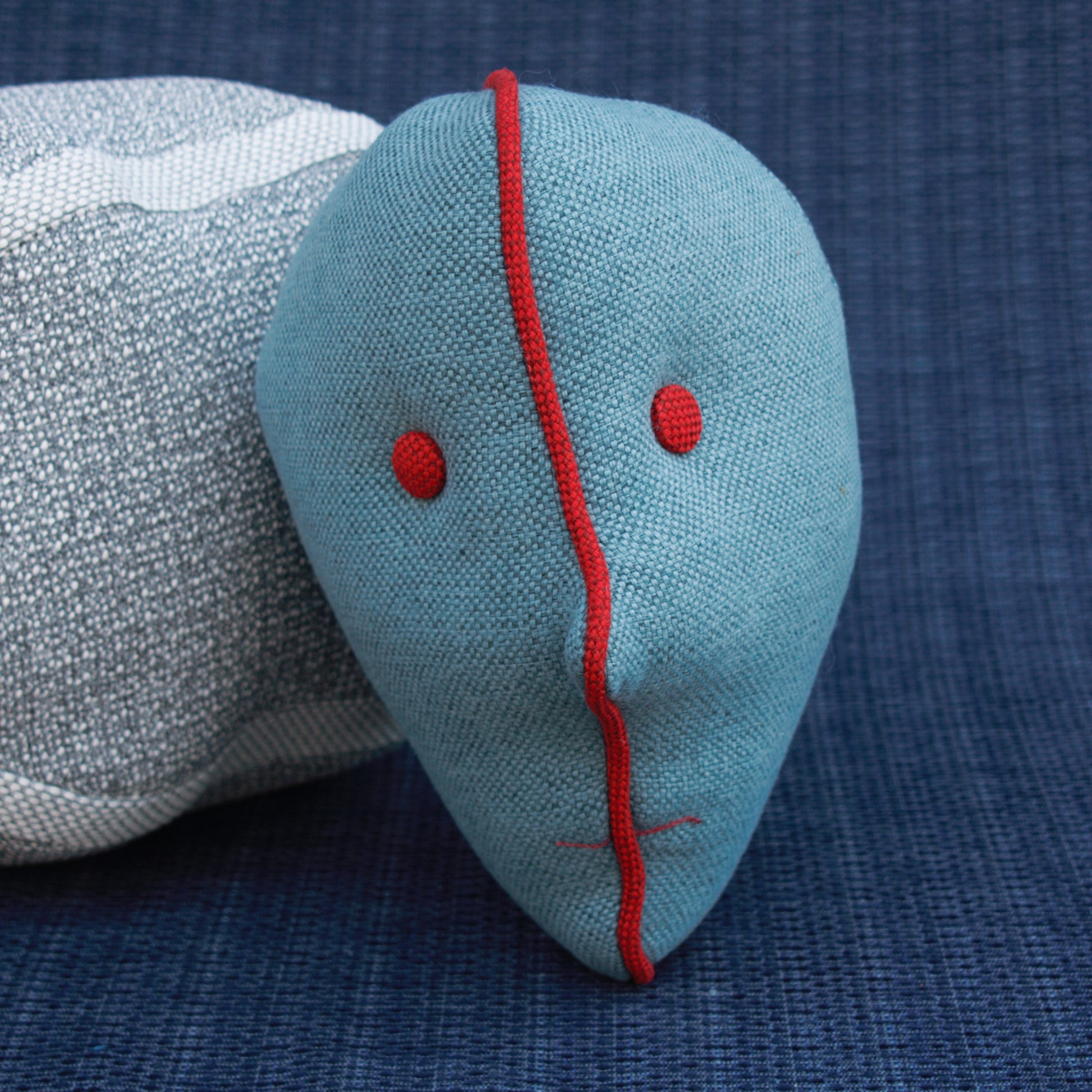 Hed is a squishy, plush sculpture of a head. He can be laid on, leaned on, held, or admired. Our Heds tow the line between art and functional product. We like to think of them as pieces of art that you can physically interact with like you would a pillow. Hed is part of our collection, Contour Objects.