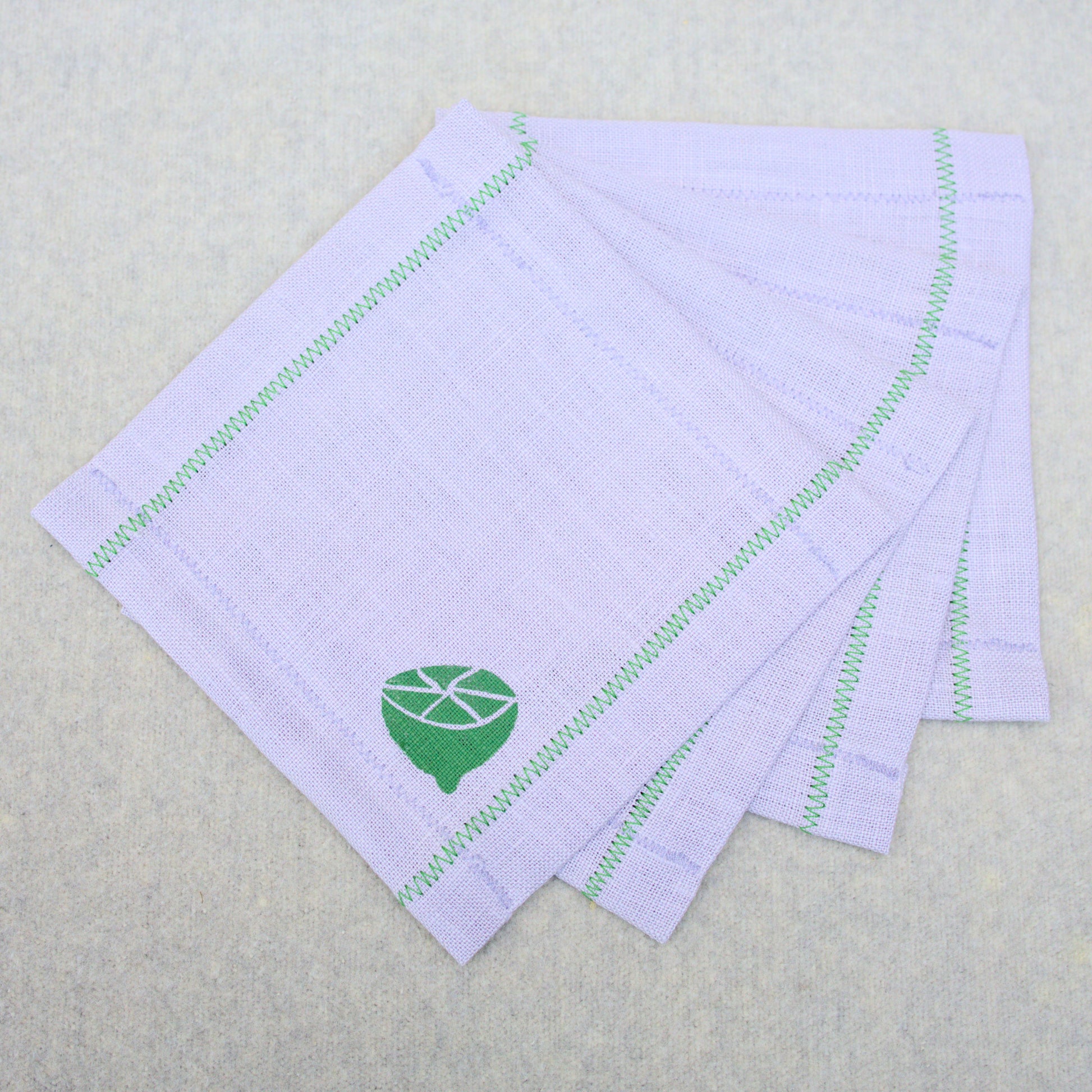 Our linen napkins are inspired by prohibition-era hemstitched napkins that commonly donned a small print or embroidered image in the corner.