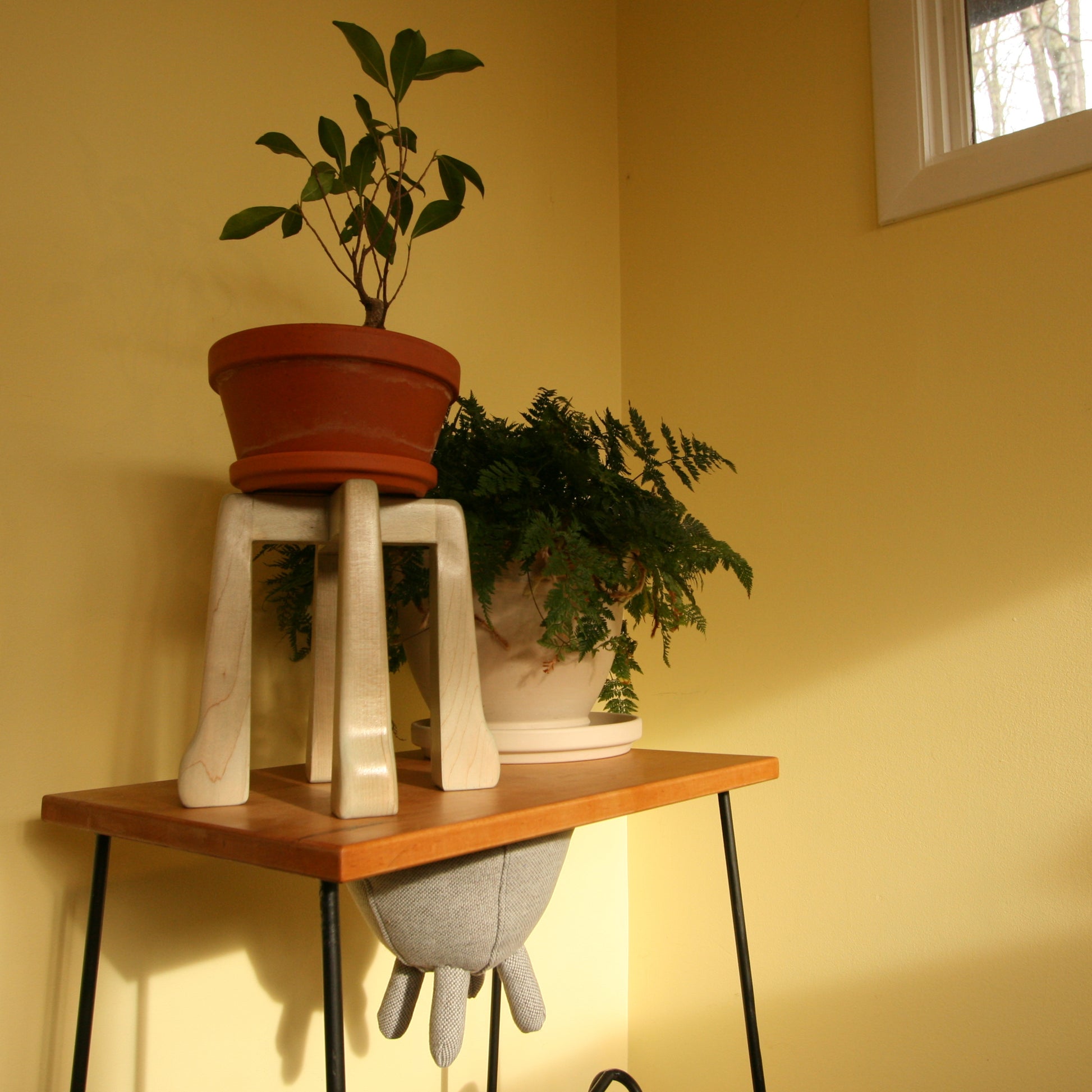 The Plant's Pedestal is a handmade, wooden stand that holds your favorite potted plant. They are made from locally sourced hard maple and finished with a greenish tint. These are perfect for when you would like to raise your plant up to bring it a little closer to the window. They work well with larger pots sitting directly on the floor or smaller pots on a side table or countertop.